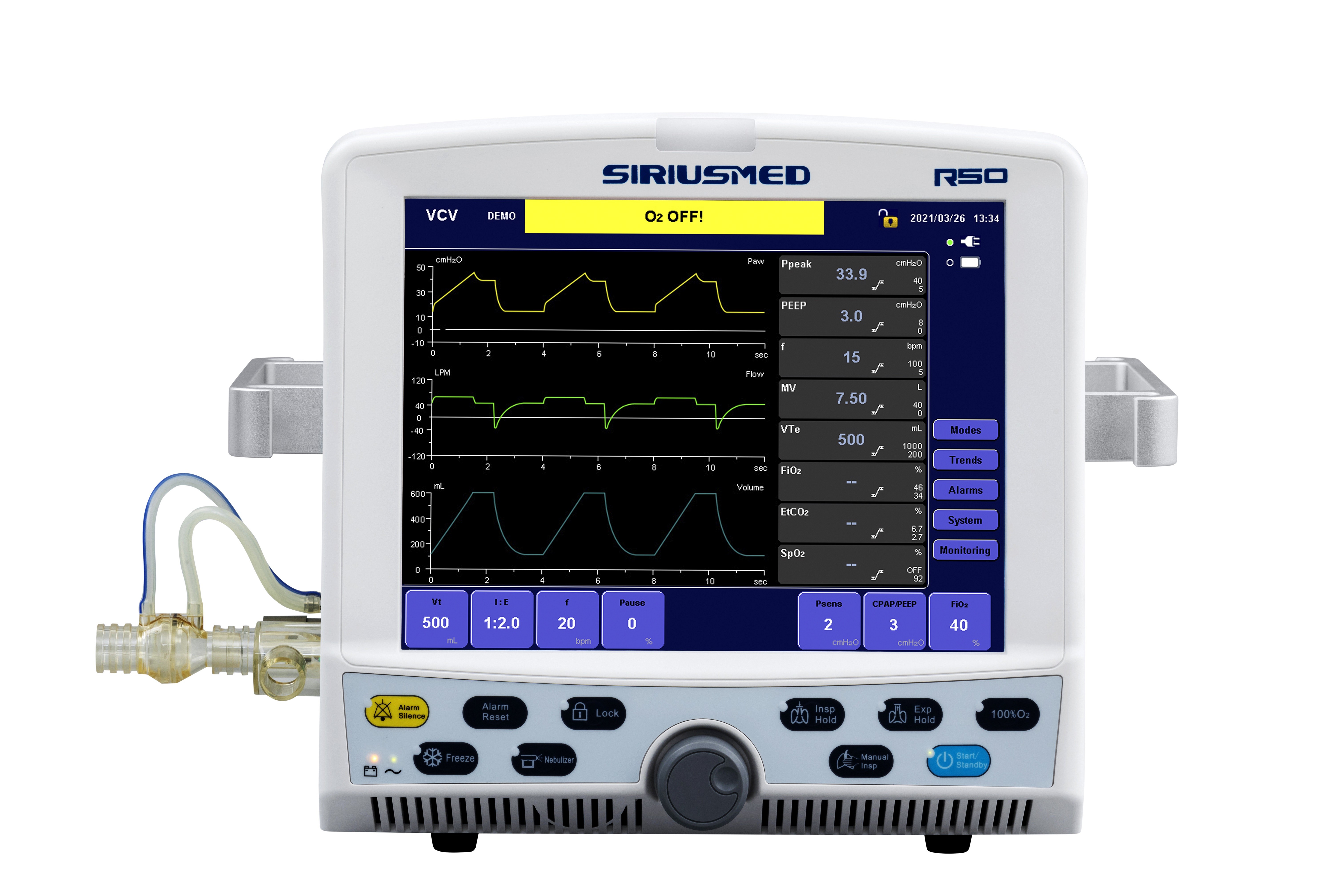 Ventilatör R50 -3 Dalga Biçimleri ve Tek Arayüzde 2 Döngü, Hızlı Geçiş Yapılabilir